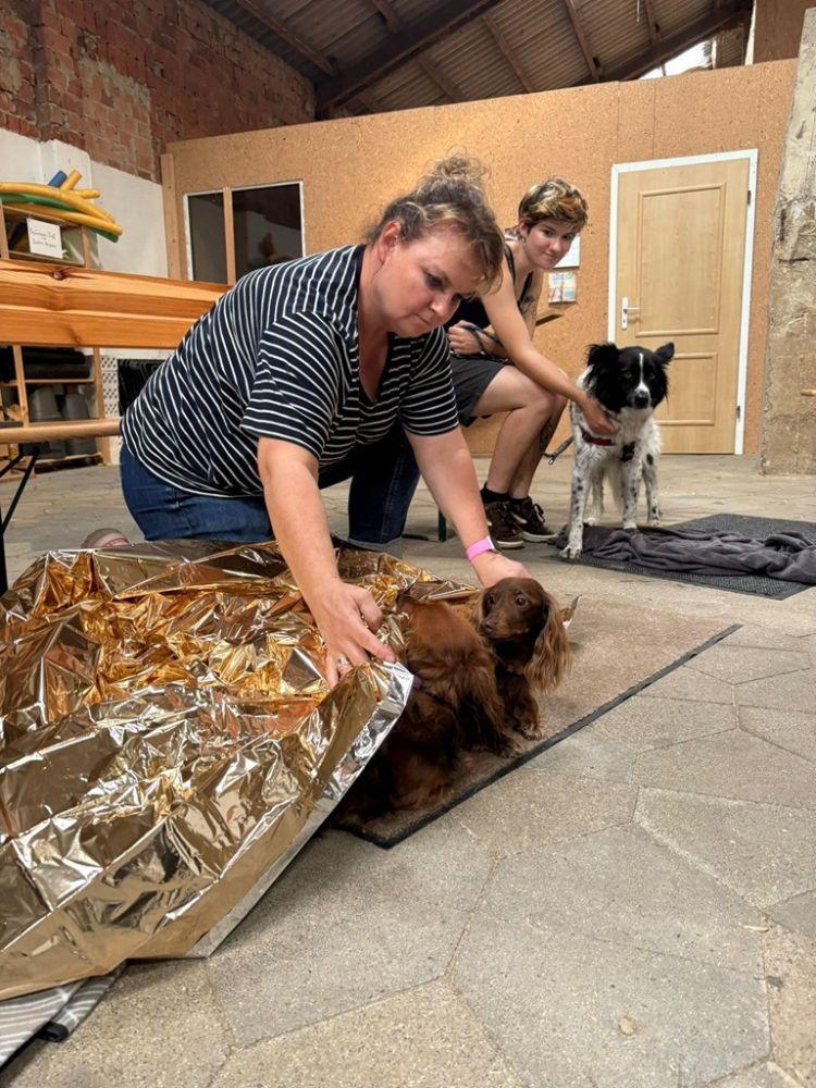 Die Herausforderung für die Hundebesitzer war es ein entspanntes Verhalten ihrer Hunde zu üben und zu bestätigen, denn diese sollten eine Menge über sich ergehen lassen.