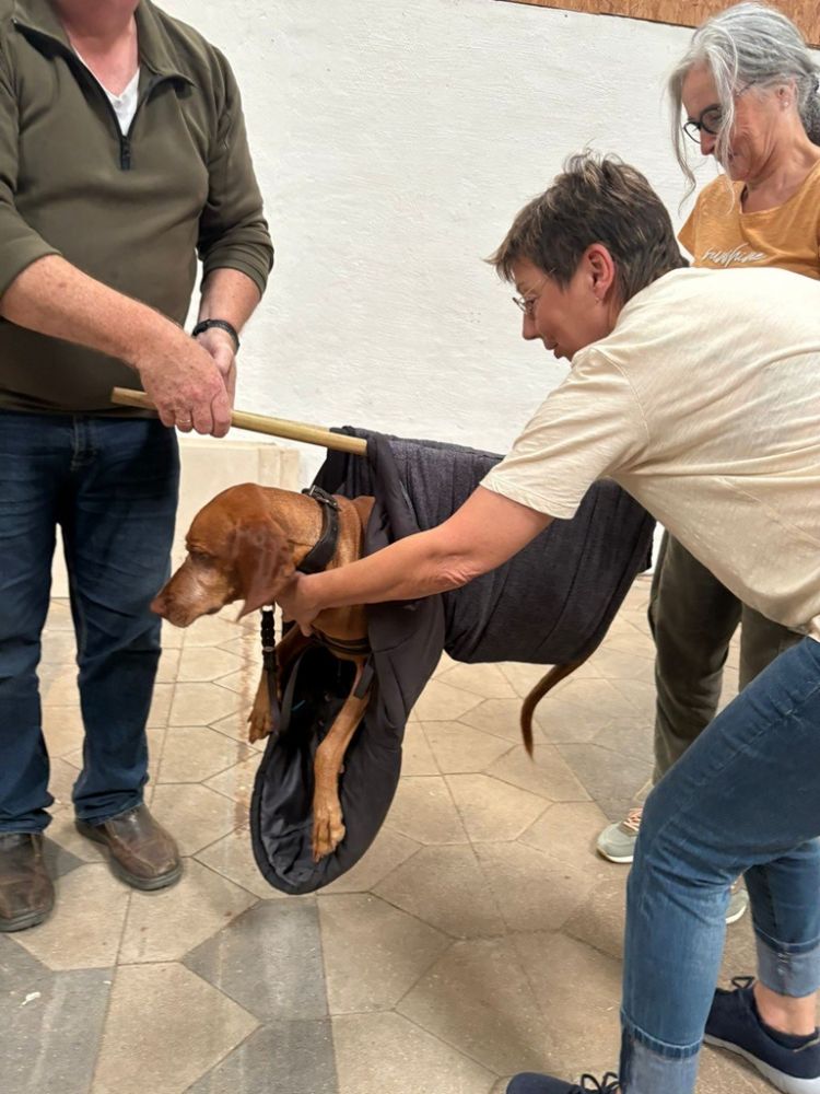 Von der Maulschlaufe über die Knisterdecke bis hin zum Anlegen eines Verbandes. Außerdem wurden Tragehilfen aus Stöcken und einer Jacke gebaut. Elke und Susanne haben die einzelnen Übungen begleitet. Die Teilnehmerzahl war begrenzt, weil alle Teilnehmer praktisch üben sollten.