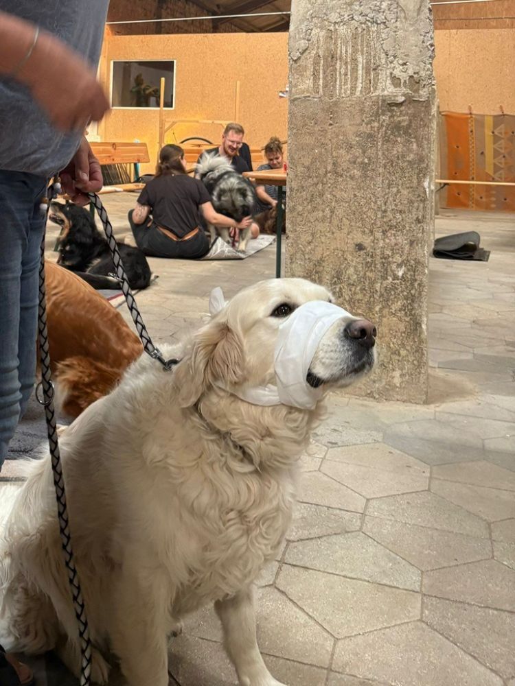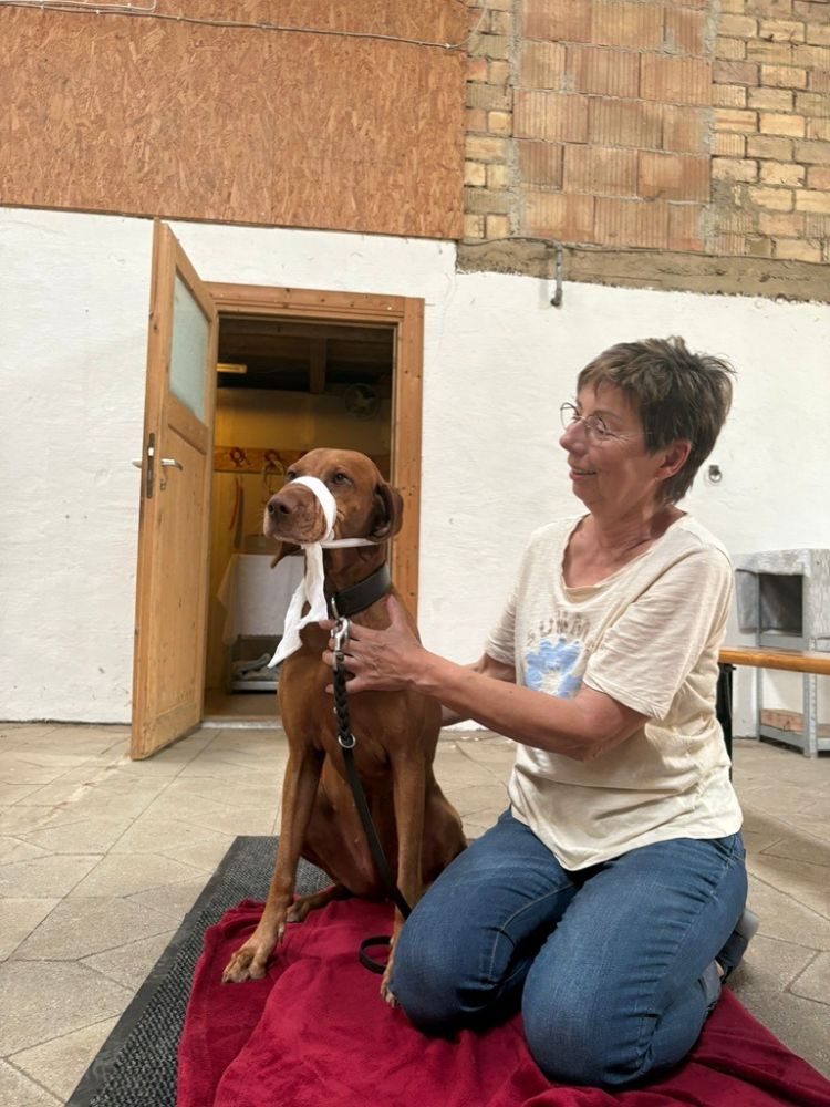 Die Herausforderung für die Hundebesitzer war es ein entspanntes Verhalten ihrer Hunde zu üben und zu bestätigen, denn diese sollten eine Menge über sich ergehen lassen.